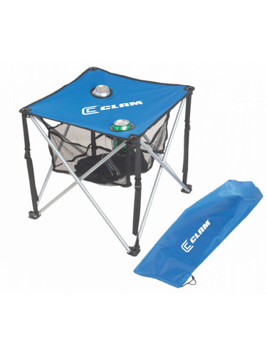 Convenient table to hold tackle, drinks or accessories. The Quick-Pack tables are ultra-light folding tables with cup holders that are deep enough to hold a bottle or tall coffee cup without tipping. Carry bag included for storage. Great for ice fishing, camping, or a day at the beach.
